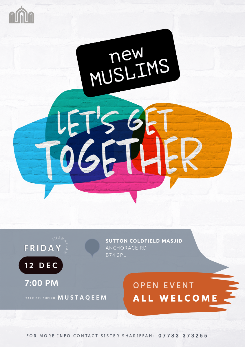 SCMA are aiming to host more sessions for new mulims in the coming months. These dates will be advertised on the website, insha’Allah.